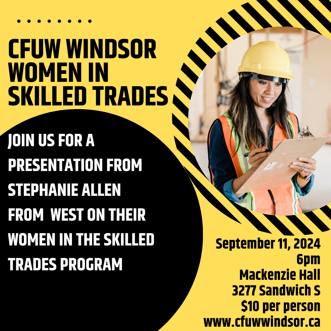 At the September CFUW Windsor meeting there will be a presentation on women in skilled trades. Learn more on the event page: September 2024 Meeting